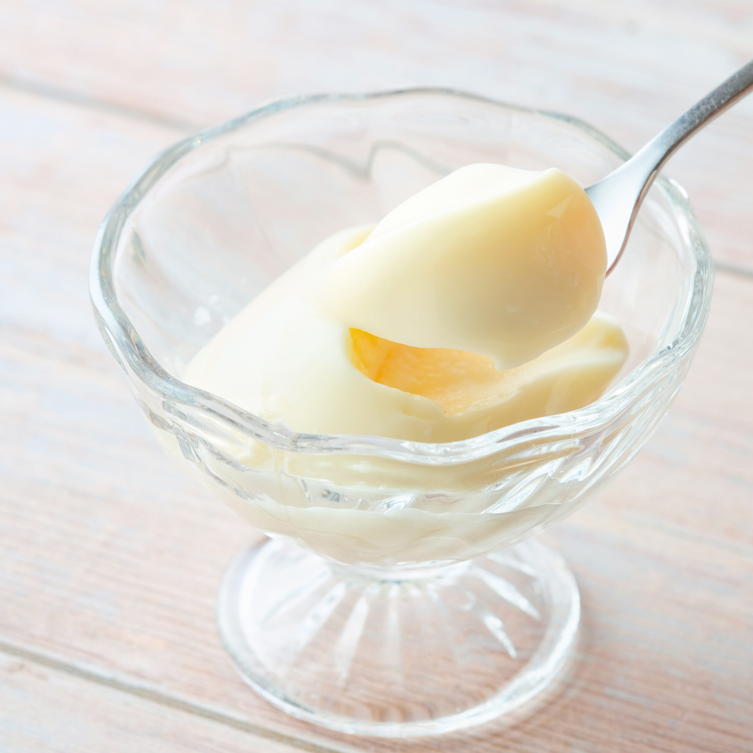 ミルクプリンと比べると食感は少し固めで、どちらかというとミルク感よりもチーズの味わいを強く感じるかもしれません。(感想には個人差があります)